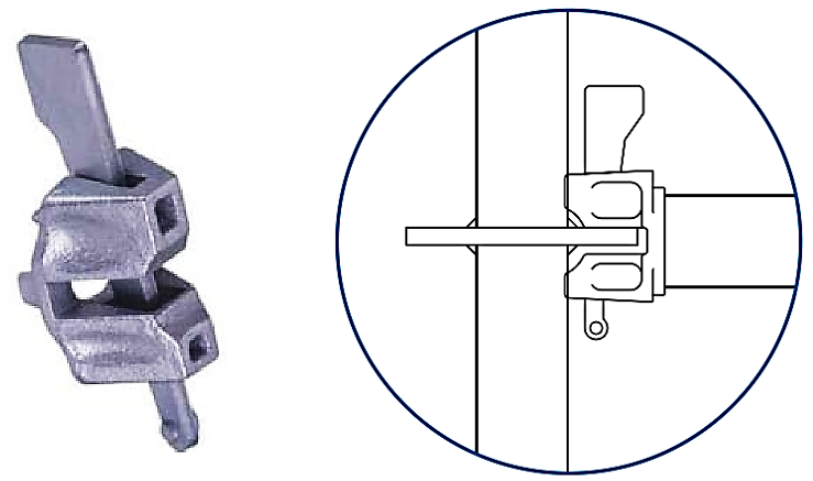 With a simple hammer strike on the captive wedge of the drop forged ledger end, the ledgers and diagonal braces safely latches on the standard ring.
