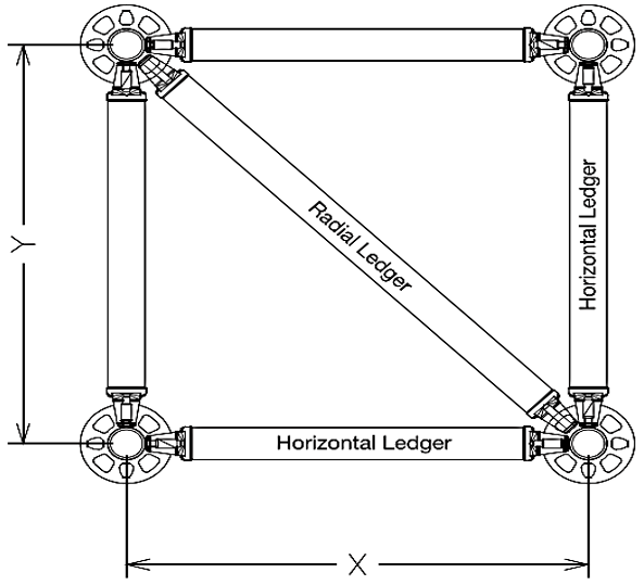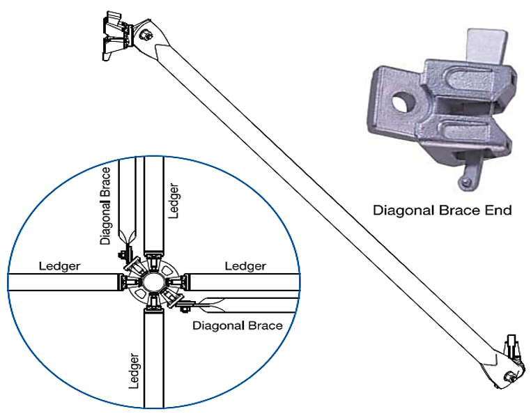 The diagonal bracing in SCAFFSHORE are 48’’ in diameter and are fitted with swivel ledger ends that allows for safe longitudinal bracing to the structure.