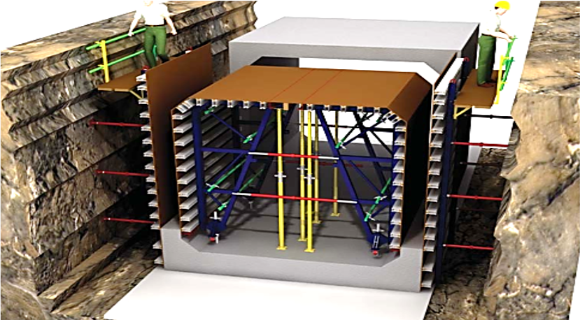 Up-to 4.5m height, the Supporting Frame system ensures rigid shoring for single side wall casting